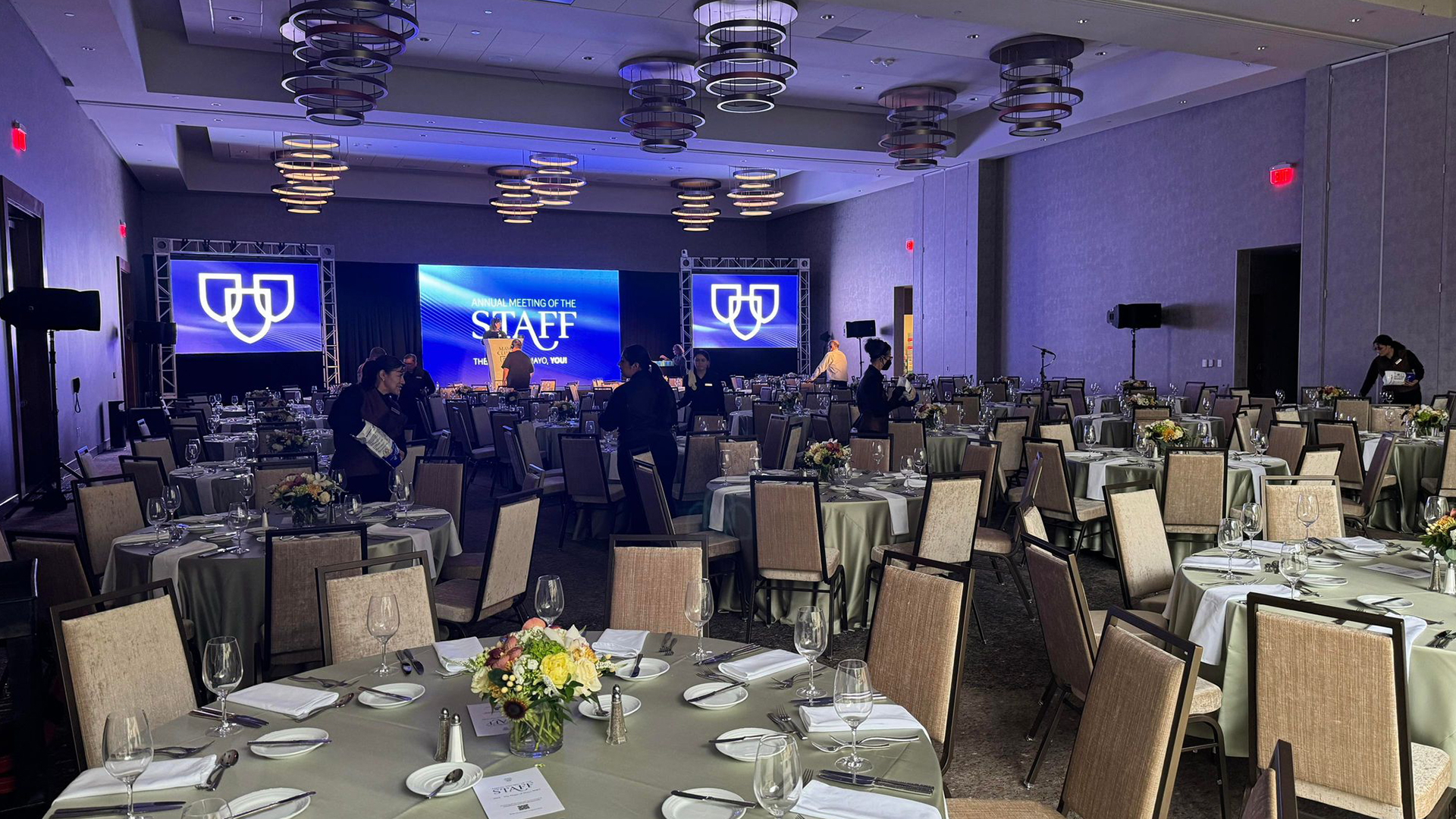 Tables, linens (available in white or black), chairs, stages, and a dance floor. Additional costs are determined based on your specific food and beverage requirements, as well as any audio-visual equipment rentals needed.
