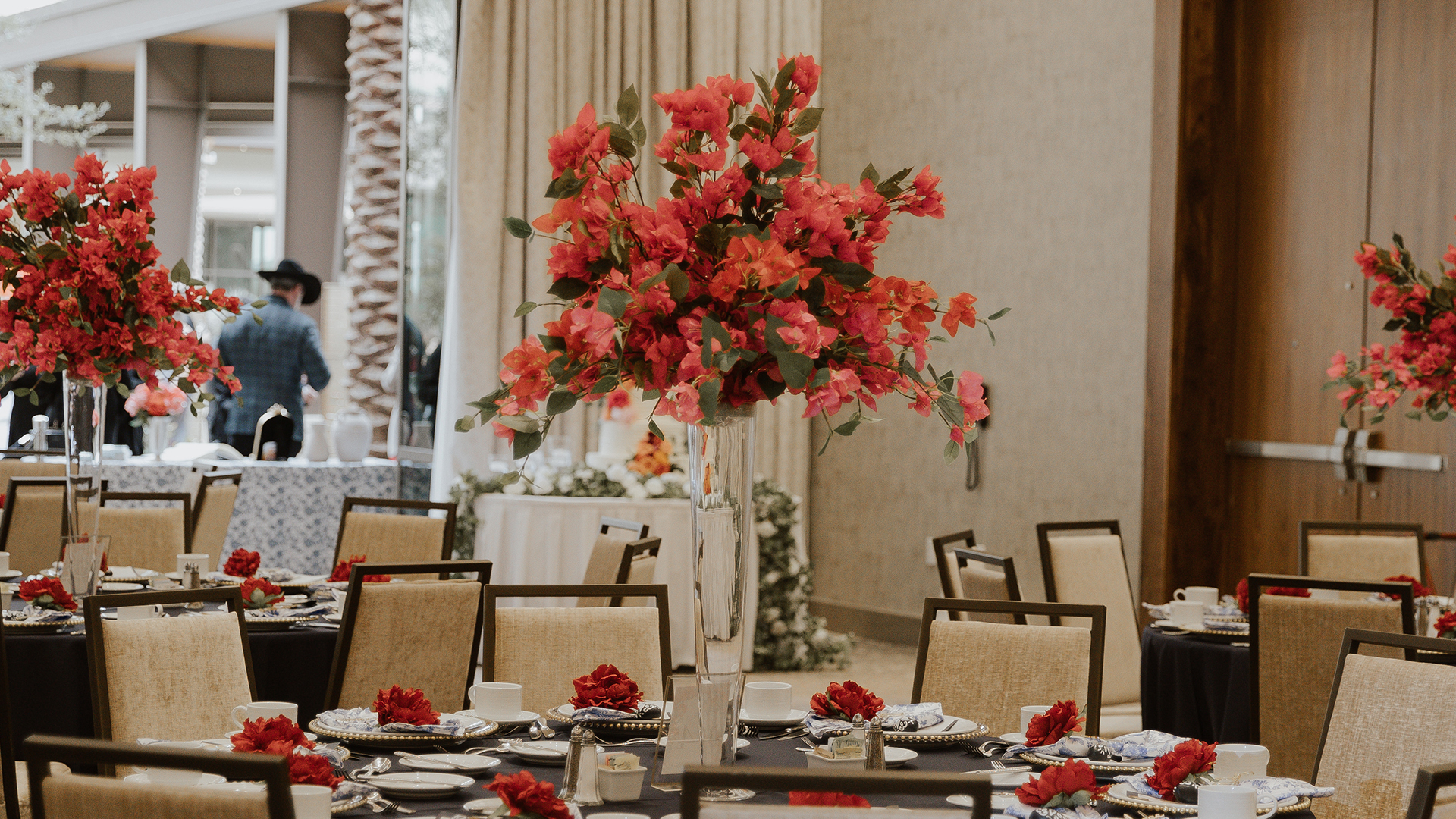 We offer complimentary base centerpiece décor to enhance your event. For specialty items and floral arrangements, we are delighted to connect you with our preferred local vendors to meet your specific needs.